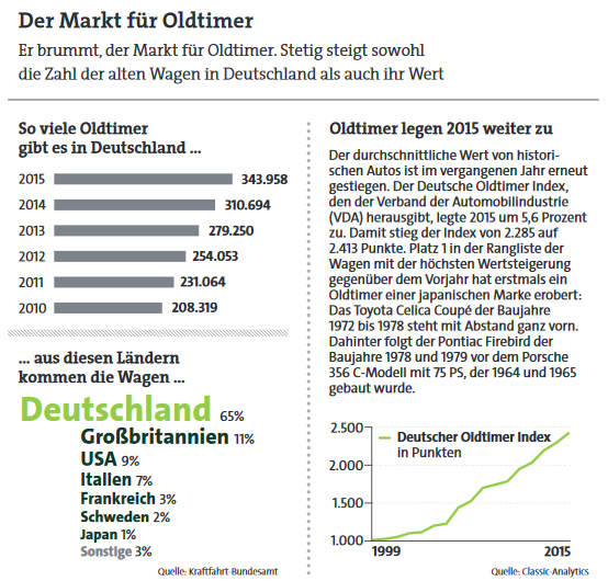 Woran aber liegt das? Ein Grund ist sicherlich, dass die geburtenstarken Jahrgänge jetzt in eine Phase ihres Lebens eintreten, in der sie sich Träume erfüllen können. Die anhaltende Niedrigzinsphase tut ihr Übriges. „Es herrscht die landläufige Meinung vor, man könne sein Geld in Oldtimern anlegen, es eventuell vermehren und dabei auch noch den Spaß mit dem schönen Wagen genießen“, sagt Dennis Neumann vom Versicherungsmakler Hanse Oldtimer aus Hamburg.