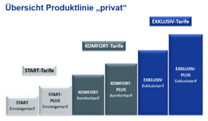 Die Einführung der Privatserie war so erfolgreich, dass die Tarife auch in die Unisex-Welt überführt wurden. Den Erfolg bestätigen auch die vielen positiven Bewertungen unabhängiger Ratingagenturen. Letztmalig im Herbst 2022 durch ascore mit „herausragend“ und Morgen & Morgen mit „ausgezeichnet“ bewertet.