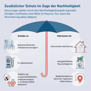 Zu den angebotenen Produktlinien können die Module Elementar, Glasbruch, Soforthilfe, Fahrraddiebstahl und Pro Klima ergänzt werden. Letzteres sichert beispielsweise Balkonkraftwerke nicht nur gegen Grundgefahren, sondern sogar gegen Bedienfehler und technische Gefahren ab. Umfassende Cyberleistungen decken unter anderem Konflikte mit Online-Händlern, Schäden durch Phishing und Skimming sowie Datenrettungs- und andere Folgekosten im Homeoffice ab.