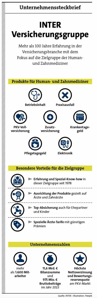 Krüger: Wenn ein Arzt aus der Festanstellung in die Niederlassung geht, ist es wichtig, die Berufshaftpflicht anzupassen. Beim Krankentagegeld – um das noch einmal kurz aufzugreifen – bieten wir bei der INTER die Möglichkeit, den bisherigen Tagessatz ohne Gesundheitsprüfung um 100 Prozent zu erhöhen. Außerdem rate ich zur häufig verschmähten Praxisausfallversicherung. Aus Kundensicht hatte sie den Nachteil, dass sie als Kompositversicherung im Schadenfall zwar nicht außerordentlich, aber ordentlich gekündigt werden konnte. Bei der INTER verzichten wir jetzt auch auf das ordentliche Kündigungsrecht. Außerdem haben wir Corona mit abgedeckt, und Praxisvertreter sind ebenfalls mitversichert. Solche Details sollten Makler nicht unterschätzen, darauf achten Ärzte sehr genau.