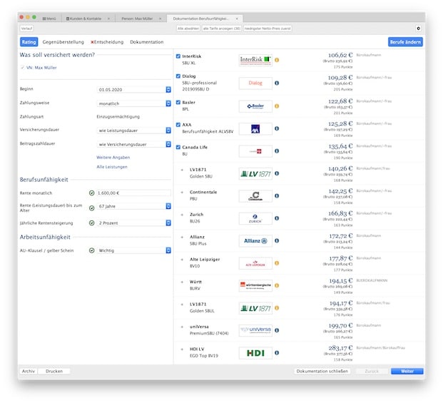 Zur Berechnung nutzte Inveda das hauseigene Software-Tool IMA (Inveda Makler Assistent), das von Versicherungsmaklern auch zur Unterstützung der Bestandsverwaltung, Risikoanalyse und Kundenberatung eingesetzt wird.