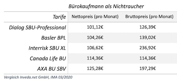 Zudem habe man bei der Auswahl der günstigsten Versicherungen darauf geachtet, dass keine der ausgewählten Versicherungen eine sogenannte Starter-BU ist. Damit sollte sichergestellt werden, dass die Nettobeiträge der Versicherungsprodukte miteinander vergleichbar sind.