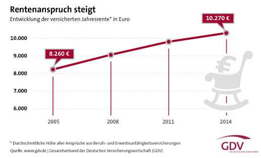 Weitere positive Nachricht: Im Schnitt liegt die versicherte Jahresrente bei gut 10.270 Euro. Und damit deutlich höher als noch 2005, als der Wert noch bei knapp 8.260 Euro im Jahr lag.