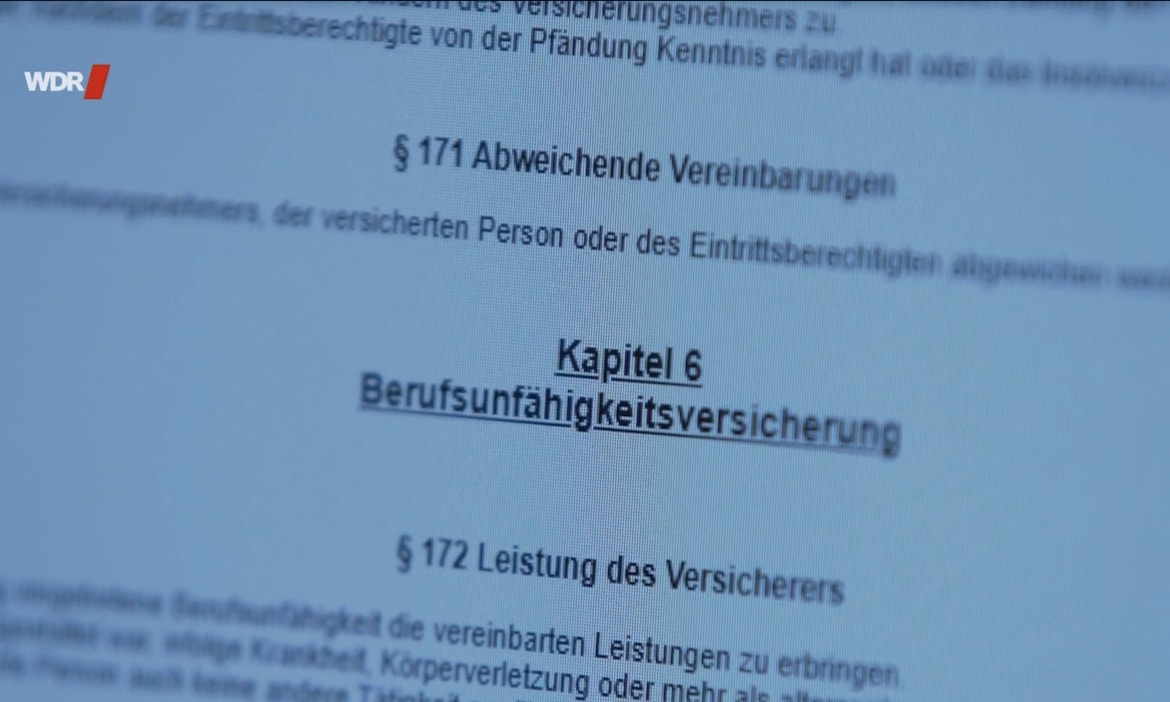 „Was soll denn noch passieren? Soll mir der Arm abfallen – oder der Kopf?“ Uwe Neumann ist verzweifelt. Obwohl er seit 2017 die volle Erwerbsminderungsrente und dazu noch Pflegegeld bekommt, verweigert ihm sein Versicherer eine Berufsunfähigkeitsversicherung (BU). Der WDR hat ihn und zwei weitere Betroffene beim jahrelangen Streit mit ihren BU-Versicherern begleitet.