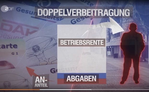 Seit 2004 müssen Millionen Betriebsrentner auf ihre ausgezahlten Erträge nicht nur den Arbeitnehmeranteil zur Kranken- und Pflegeversicherung entrichten, sondern auch den Arbeitgeberanteil. Gegen diese sogenannte Doppelverbeitragung wehren sich immer mehr Betroffene. Das ZDF-Magazin Frontal 21 hat sich dem Thema angenommen. Hier geht es zum Video.