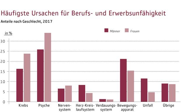 Erwerbs- oder Berufsunfähigkeit meist psychisch bedingt