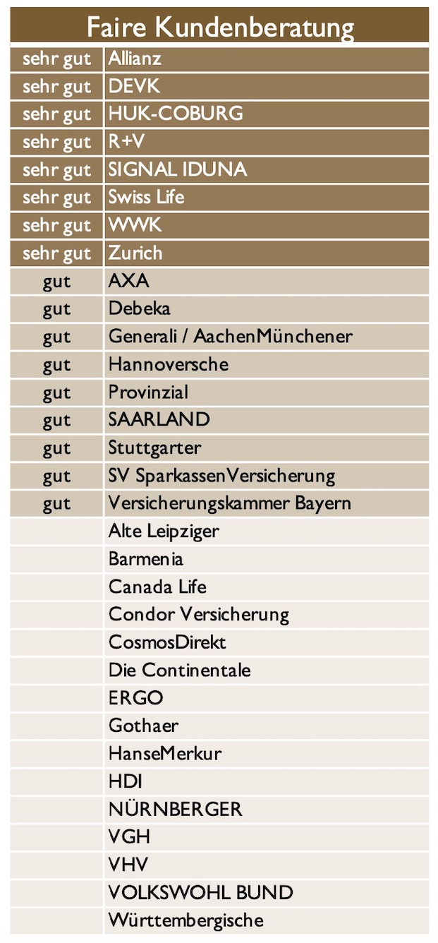Insgesamt kamen somit 2.592 Urteile von 1.991 Kunden zu 32 Versicherern zusammen. Die Kunden durften dabei bis zu drei Versicherern bewerten, bei denen die Befragten in den letzten 24 Monaten Kunden waren. Die Onlinebefragung wurde im Mai und Juni 2020 durchgeführt.