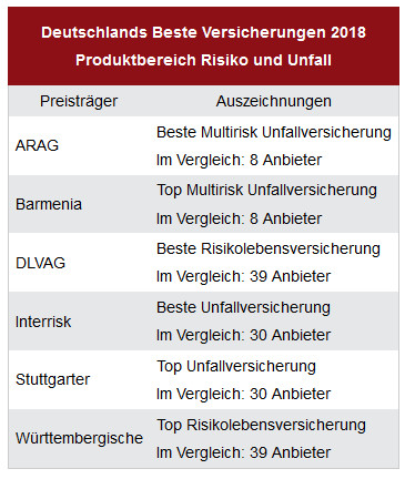 Untersucht haben die Analysten in dieser Kategorie Risikolebensversicherungen, Multirisk Unfallversicherungen und „normale“ Unfallversicherungen.