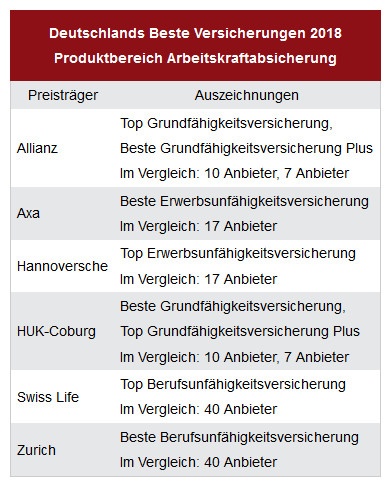 In unserer Bilderstrecke erfahren Sie, welche Versicherer in den zehn untersuchten Kategorien die Nase vorn hatten. Das sind die Kategorien: Fahrzeugversicherung, Rechtsschutz, Haus und Heim, Gesundheit (Vollversicherung), Gesundheit (Zusatzversicherung), Reiseversicherung, Risiko und Unfall, Arbeitskraftabsicherung, Rente und Altersvorsorge.