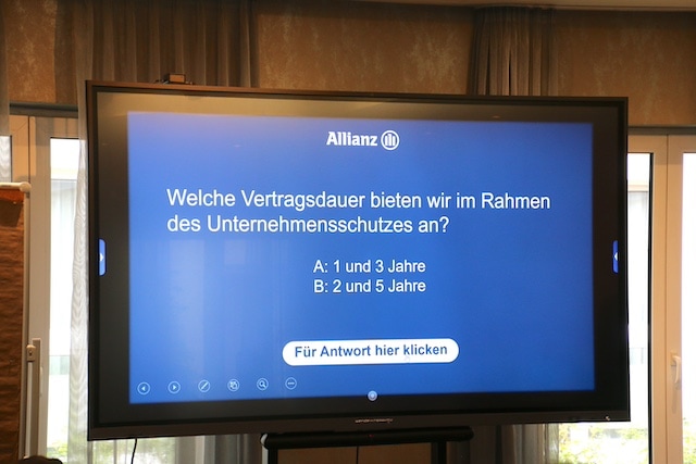 Wer Fragen wie diese von der Allianz Sachversicherung richtig beantworten konnte, erhielt als Preis ein handliches Bier.