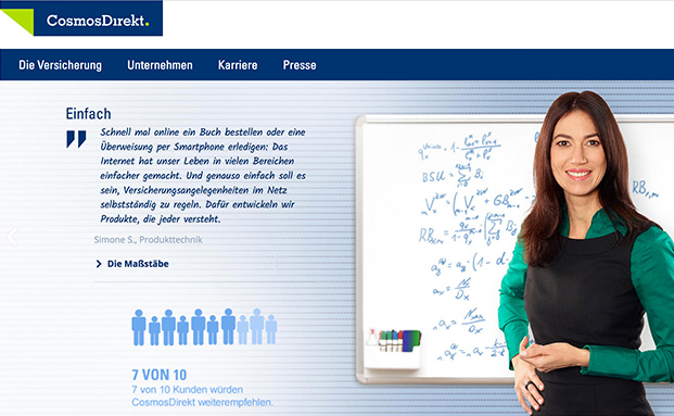 Screenshot der Website von Cosmos Direkt.