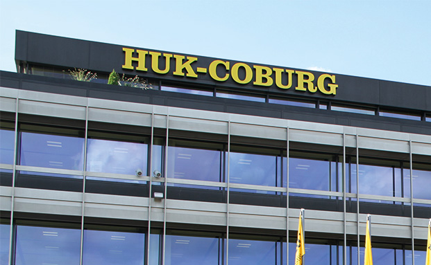 Die Huk-Coburg am Bahnhofsvorplatz in Coburg.