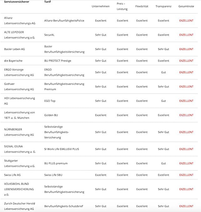 Serviceversicherer, die die Bestnote „Exzellent“ erhielten