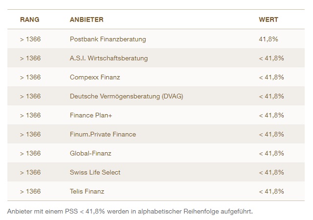Der Preis-Begeisterungswert für Finanzvertriebe liegt bei 35,7 Prozent.
