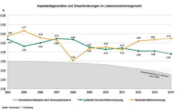 „Dabei weisen die Leistungsversprechen an die Kunden in der Regel eine längere Laufzeit auf als die Kapitalanlagen“, sagt Lars Heermann, Bereichsleiter Analyse der Assekurata und Autor der Untersuchung. „Dadurch gehen die Zinserträge bei anhaltendem Niedrigzinsumfeld auf Dauer schneller zurück als die Verpflichtungen der Lebensversicherer.“