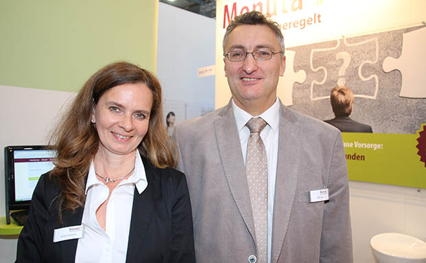 Anita Unkelbach und Ralf Dolz am Stand der Monuta