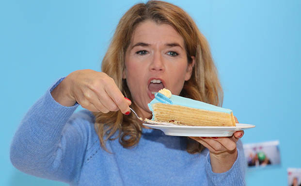 Es gab gleich zwei Jubiläen zu feiern: Die Hannoversche wurde 140 und Anke ist seit 10 Jahren Ihr Testimonial – daher gab es auch eine mehrstöckige Torte in hannoversch-blau.