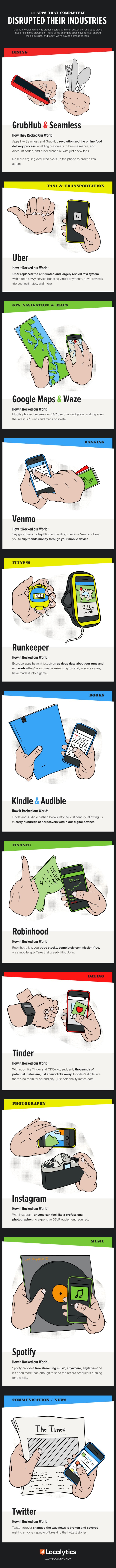 Apps können ganze Branchen verändern und alte Jobs vernichten. In welchen 14 Fällen das bisher passiert ist, zeigt die Infografik der Woche.