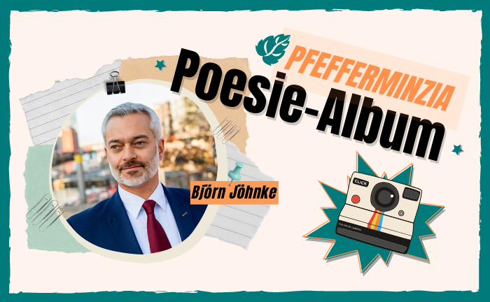 In dieser Woche trägt sich Björn Thorben M. Jöhnke von der Hamburger Rechtsanwaltskanzlei Jöhnke & Reichow in das Pfefferminzia-Poesie-Album ein.