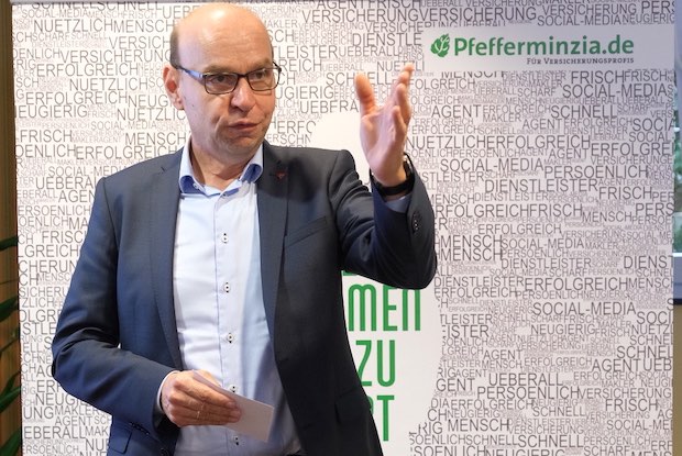 Matthias Heß, Geschäftsführer von Pfefferminzia, begrüßt die Gäste.