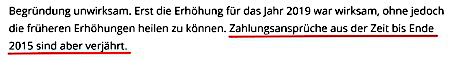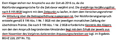 Viele der Ansprüche sind verjährt, weil der Kläger Kenntnis von der Erhöhung hatte. Im November des jeweiligen Vorjahres traf die BAP ein. Ein Streit über den Zugang wurde nicht verhandelt, weshalb der Autor von stillschweigendem Übereinstimmen ausgeht.
