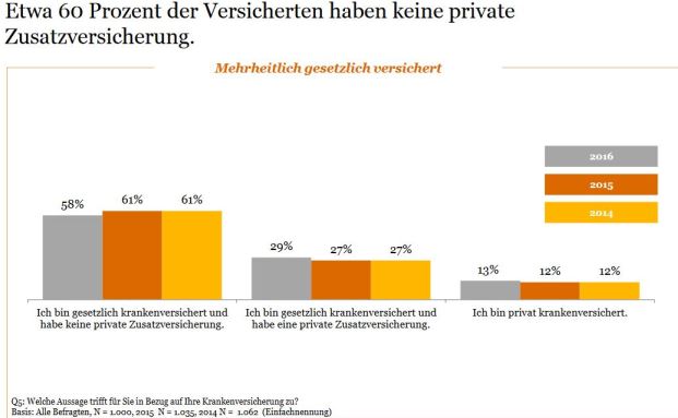 Das sei umso bemerkenswerter, als viele Bürger gar keine private Zusatzversicherung abgeschlossen haben, so die Einschätzung der Studienautoren.