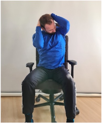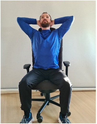 Öffne Deine Ellenbogen (die Unterarme liegen dabei in etwa in Höhe der Schläfen oder etwas darüber)