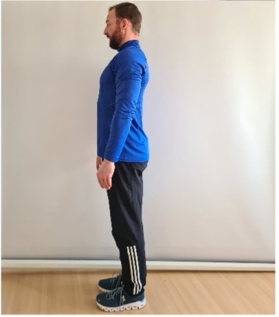 Der Winkel zwischen Oberschenkel und Unterschenkel beträgt ca. 90°.