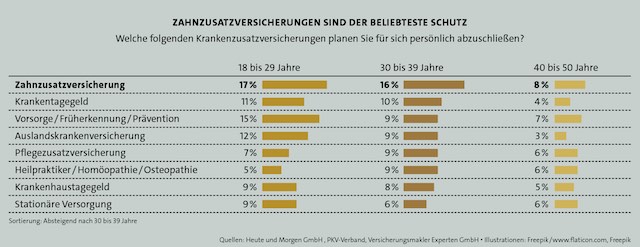 Oft übersehe man dann möglicherweise doch „die eine oder andere Einschränkung oder gewisse positive Leistungsdetails, die beim teureren Angebot besser sind“. Sein Rat an Versicherungsmakler lautet daher, „auf Qualität und Transparenz bei den Bedingungen zu setzen“. Besonders wichtig sei dabei auch die Berücksichtigung des Zahnzustandes des Absicherungswilligen. Kurzum: „Das Produkt muss vor allem auch hinsichtlich der Annahmerichtlinien zum Kunden passen. Fehlende Zähne beispielsweise werden von vielen Gesellschaften sehr unterschiedlich bewertet, genauso wie Vorerkrankungen wie zum Beispiel eine Parodontose.“