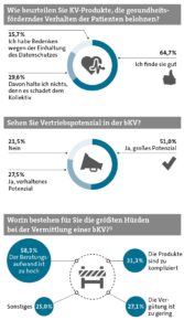Dieses Potenzial sehen vielfach auch unsere Leserinnen und Leser. 51 Prozent sehen in diesem Markt große Chancen, knapp 28 Prozent immerhin verhaltenes Potenzial. Gut jeder Fünfte glaubt aber nicht, dass hier viel Geschäft zu machen sei. Das könnte daran liegen, dass Vermittler hier durchaus Hürden sehen. Der Beratungsaufwand sei zu groß, meinen etwa 58 Prozent. Die Produkte seien zu kompliziert, geben 31 Prozent an. Eine zu geringe Vergütung sehen 27 Prozent als Hindernis für die weitere Verbreitung der bKV.