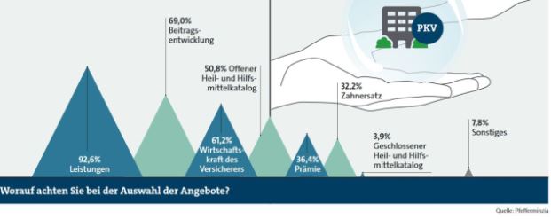 Aber mal im Detail. Worauf kommt es unseren Lesern bei einer privaten Krankenvollversicherung an? Die größte Rolle spielen laut Umfrage-Ergebnissen die Leistungen (92,6 Prozent), gefolgt von der Beitragsentwicklung (69,0 Prozent) und der Wirtschaftskraft des Versicherers (61,2 Prozent).