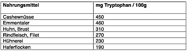 Tryptophan findet sich beispielsweise in folgenden Nahrungsmitteln (Burgerstein, Handbuch Nährstoffe):