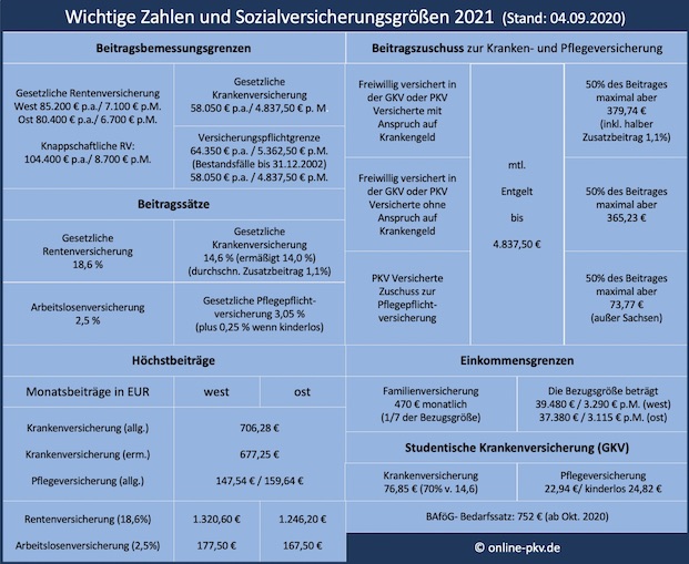 Darüber hinaus steigen die Bemessungsgrenzen der gesetzlichen Renten- und Arbeitslosenversicherung: Die Beitragsbemessungsgrenze (West) in der allgemeinen Rentenversicherung steigt 2021 auf 7.100 Euro/Monat (Vorjahr: 6.900 Euro/Monat) und die Beitragsbemessungsgrenze (Ost) auf 6.700 Euro/Monat (2020: 6.450 Euro/Monat).