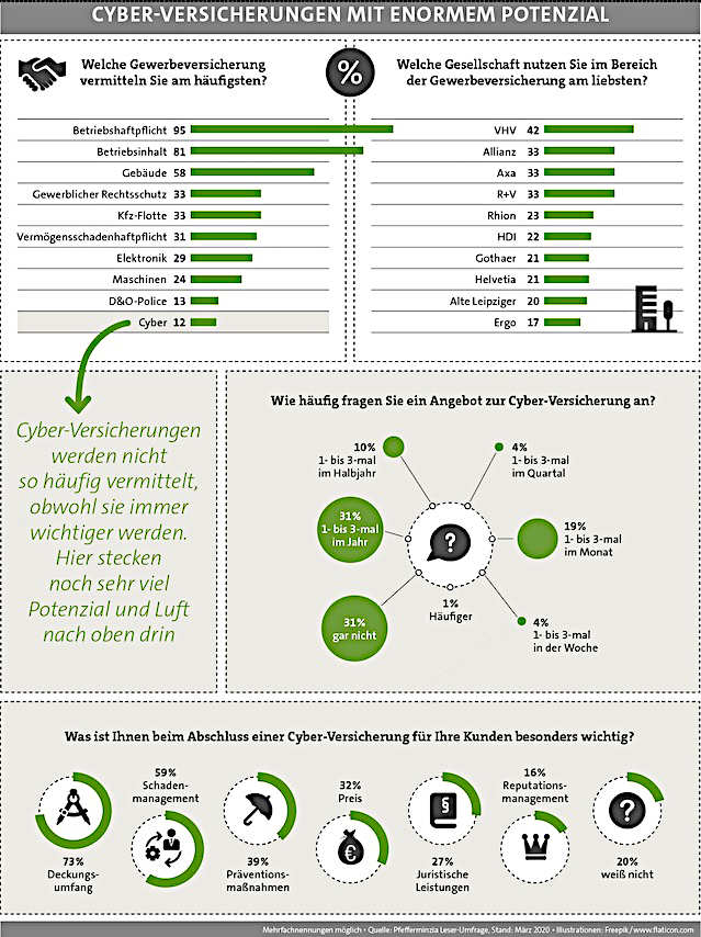 Angesichts der Digitalisierung, die durch die Corona-Pandemie aktuell noch einmal deutlichen Antrieb erhält, könnte sich der Bedarf an gewerblichen Cyber-Versicherungen in den kommenden Monaten allerdings erhöhen.