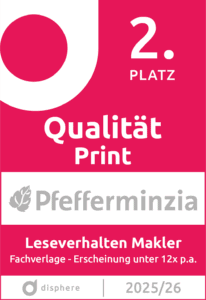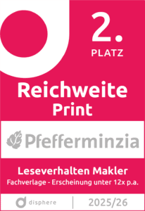 Das Print-Magazin von Pfefferminzia erscheint seit Februar 2016 alle zwei Monate mit einer Auflage von zurzeit ca. 21.500 Print-Exemplaren plus 1.100 E-Book-Magazinen. Vom Start weg genießt das Pfefferminzia-Magazin bei den Maklern und Vermittlern ein hohes Ansehen.