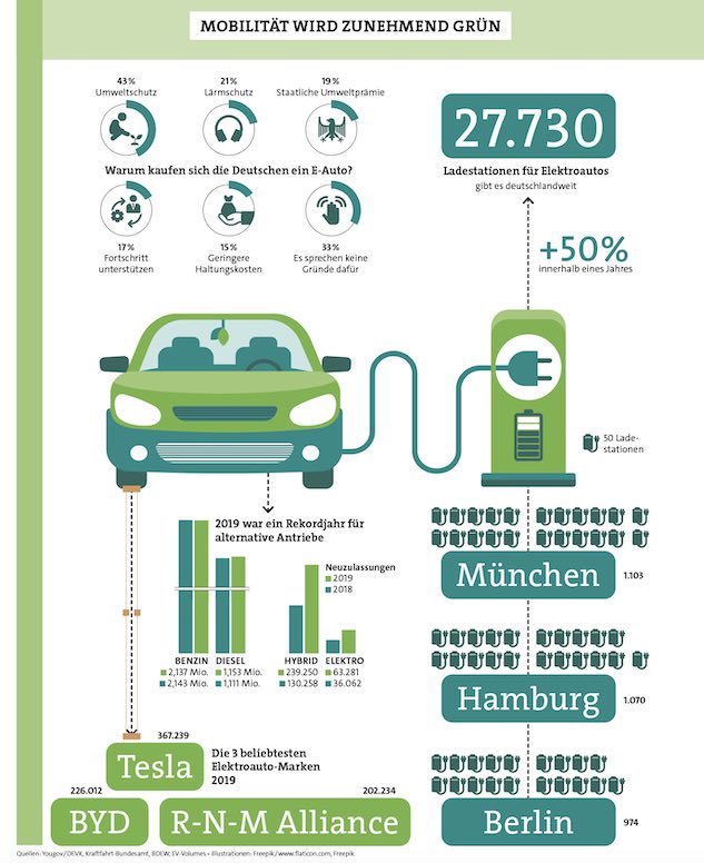Viele Menschen in Deutschland legen zunehmend Wert darauf, ihren Alltag möglichst umweltschonend zu gestalten. Sie kaufen im Unverpackt-Laden, essen weniger Fleisch, wechseln zu Ökostrom. Zugegeben gehört das Autofahren nun nicht unbedingt zu den Maßnahmen, die man als besonders nachhaltig einordnen würde. Aber auch hier tut sich was. Der Anteil an Autos mit hybriden Antrieben legt zu – im vergangenen Jahr sogar ziemlich explosionsartig. Fast verdoppelt haben sich die Neuzulassungen von Elektro- und Hybridfahrzeugen im Jahr 2019, belegen Zahlen des Kraftfahrt-Bundesamts.