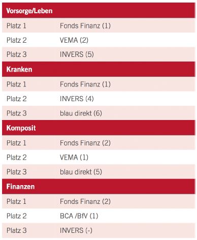 Im Komposit-Bereich löst Fonds Finanz die Vema als Spitzenreiter ab und ASC wird von Blaudirekt vom Podest verdrängt.