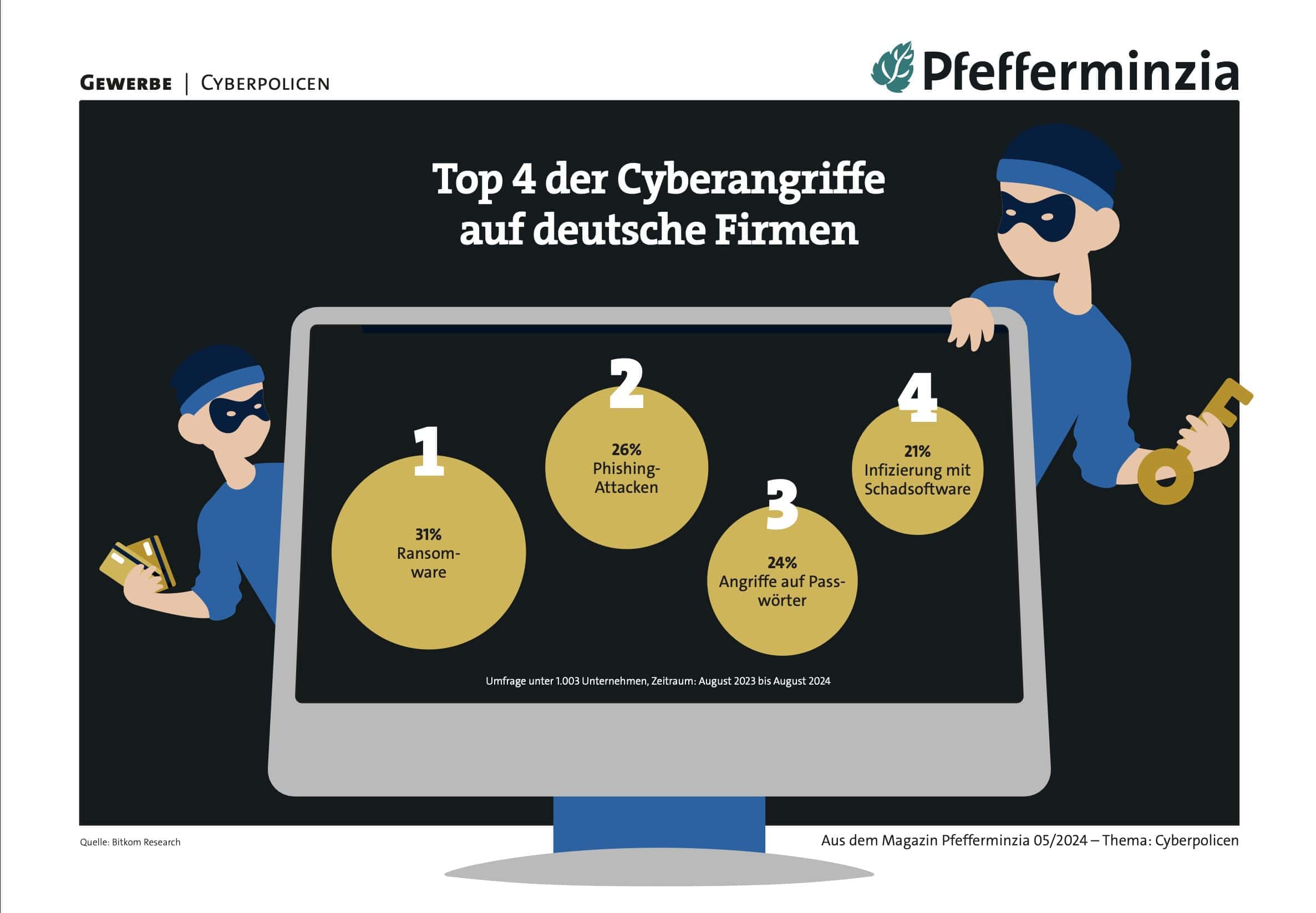 Cyberattack auf deutsche Firmen, Cyberkriminalität, Cyberpolicen, Cyberangriffe, Schutz vor Hackerangriffen.