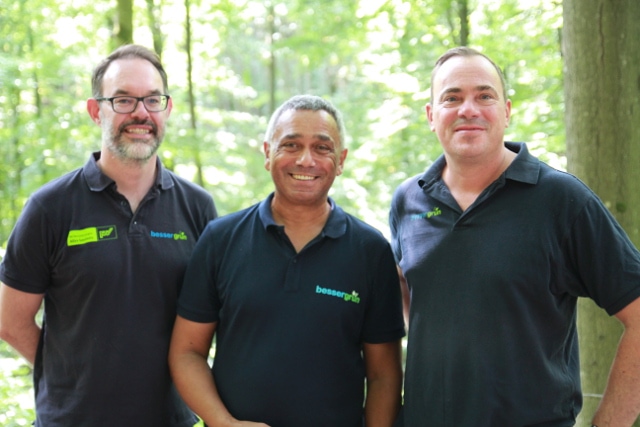 Auch künftig wird die neue zusammengesetzte Geschäftsführung von bessergrün, Henning Bernau (NV Versicherungen), Frederik Waller (Itzehoer) und Thomas Vogel (Admiral Direkt) (von links), den Wald als wichtiges ökologisches bessergrün-Projekt weiterverfolgen.