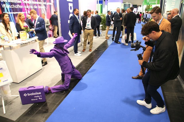 Performance-Kunst in violett, dargebracht von der Baloise.