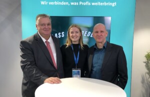 Geballte Investmentexpertise (v.l.): Marcus Langer (Bereichsdirektor Vermittler- und Bankenvertrieb & Versicherungsvertrieb) bei Ökoworld mit seiner Kollegin Tanja Dillenberger (Senior-Marketing- und Social-Media-Managerin) und Pfefferminzia-Redakteur Andreas Harms.