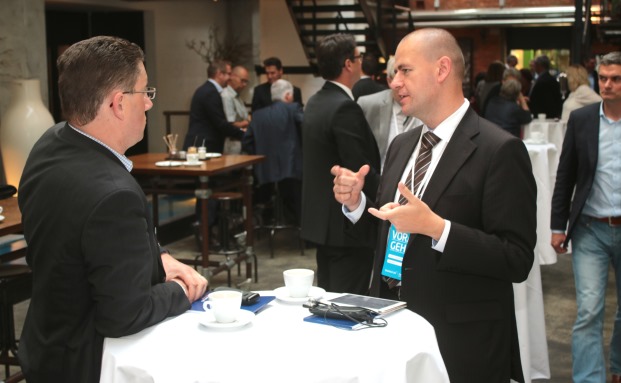 Die Diskussionsrunde, von links: Carsten Zielke, Eckhard Sauren, Paul Matthews, Moderator Marc Surminski, Jeff Regazzoni, Claus Mischler und Florian Schreiber. © Oliver Lepold