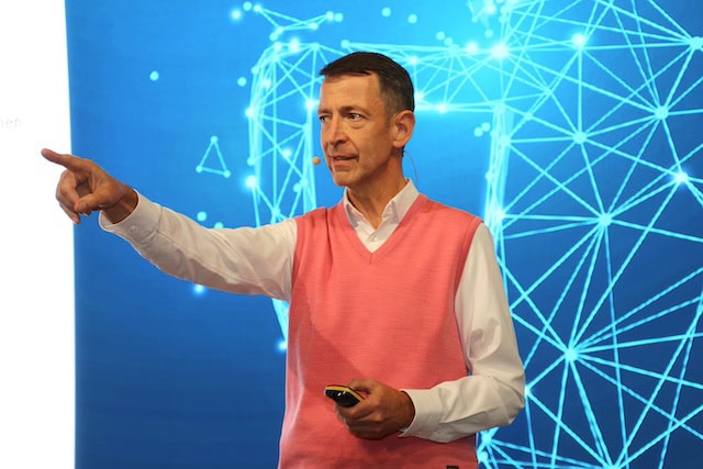 Steffen Ritter, Institut Ritter, erläuterte die Hintergründe des Wettbewerbs zum „Unternehmer-Ass 2024“. Zum Gewinner wurde kurze Zeit später mit Tobias Tobisch ein früherer Sieger des Jungmakler-Awards (aus dem Jahr 2013) gekürt.