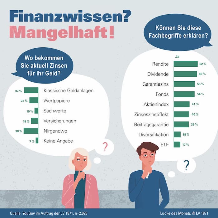 „Die Ergebnisse unserer Umfrage sind beunruhigend: Rund jeder vierte Deutsche kann wichtige Finanzbegriffe nicht erklären“, kommentiert Hermann Schrögenauer, Vertriebsvorstand der LV 1871, die Ergebnisse der Umfrage. Gleichzeitig sei aber die private Vorsorge „so wichtig wie nie“. Diese Kombination nennt Schrögenauer „verheerend“.