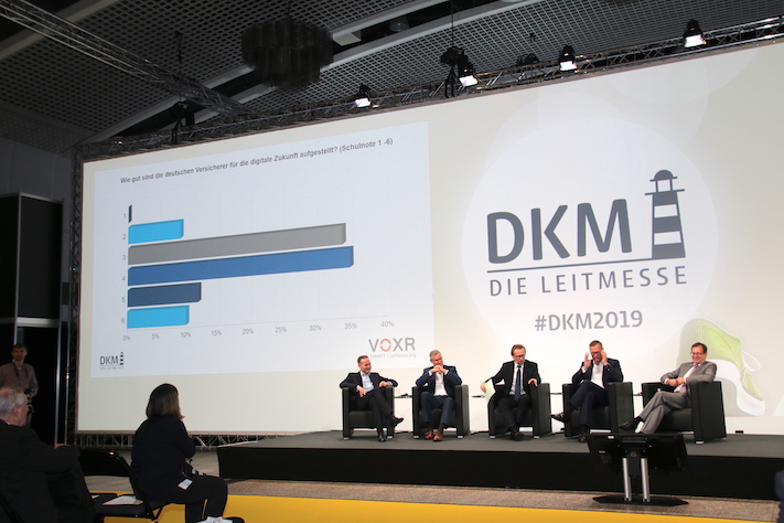 ©Oliver LepoldIm Anschluss leitet Marc Surminksi (Mitte) eine Fachdiskussion zur Zukunft der Versicherer. Mit in der Runde (von links): Achim Kassow (Ergo), Christoph Bohn (Alte Leipziger/Hallesche), Moderator Surminski, Carsten Schildknecht (Zurich Gruppe) und Norbert Rollinger (R+V Versicherung).