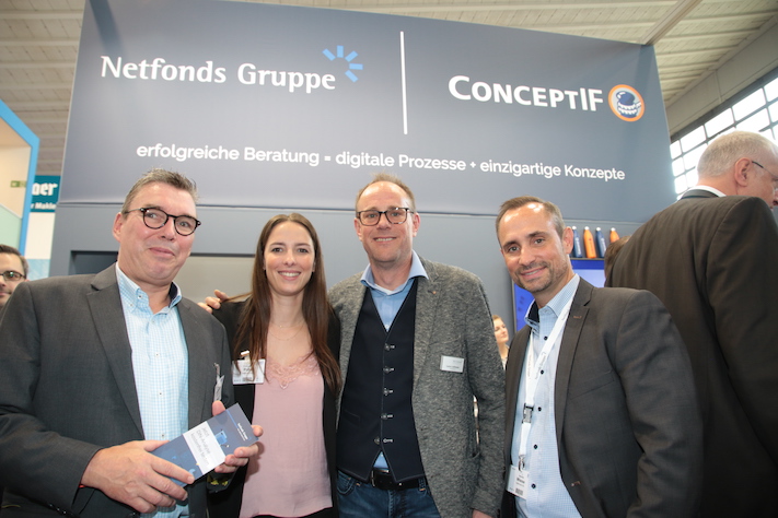 Ein Teil des Teams der Netfonds Gruppe auf der DKM (von links): Ulf Rickmers, Franziska Pohl, Lars Lüthans und Sascha Wiese.