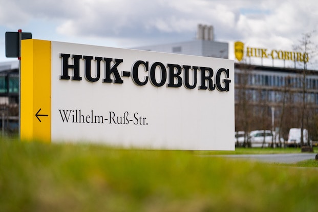 Die Allianz-Arena leuchtet in München: Die Allianz ist und bleibt der mit Abstand größte Versicherer hierzulande. Doch ist ihr Vorsprung erneut gewachsen? © picture alliance / SvenSimon | FrankHoermann/SVEN SIMON