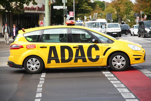 Ein Auto des ADAC fährt im September 2019 in Berlin im Bezirk Steglitz-Zehlendorf auf eine Kreuzung zu. Foto: picture alliance/dpa