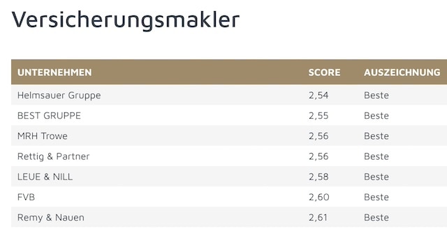 Für ein neues Ranking von Servicevalue und dem „Tagesspiegel“ sollten Verbraucher bewerten, wie gut sie sich von Unternehmen beraten fühlen. Für die Kategorien Direktversicherer, Finanzvertriebe, Krankenkassen, Versicherer und Versicherungsmakler finden Sie die Ergebnisse hier.