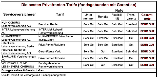 Zum elften Mal hat das Institut für Vorsorge und Finanzplanung private Rentenversicherungen untersucht. 145 Tarife von 52 Anbietern kamen dabei unter die Lupe. Wer am stärksten abschnitt, erfahren Sie hier.